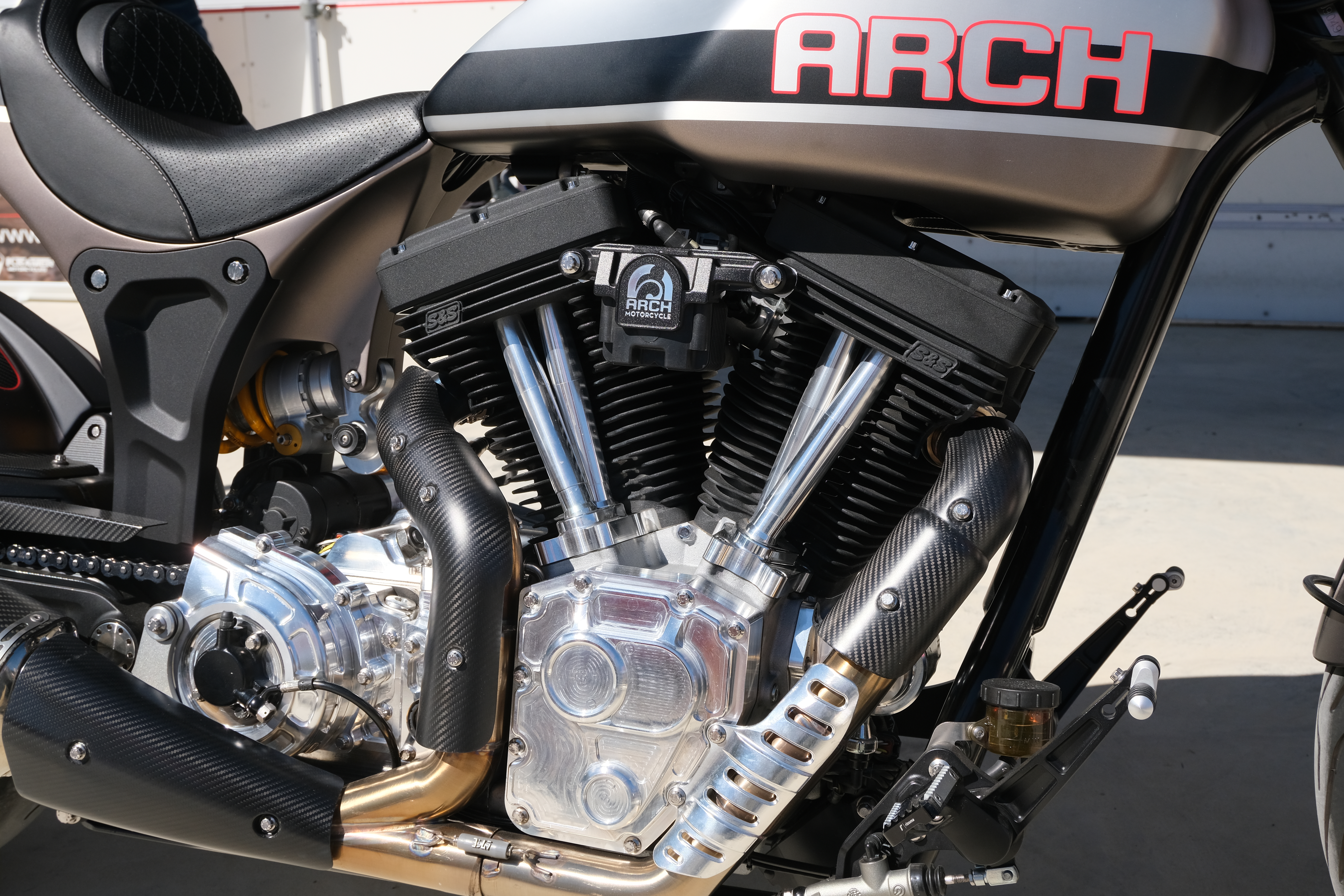 The KRGT-1 is engineered with a massive 2032cc S&S V-twin engine, capable of pumping out an impressive 121 lb-ft of torque, ensuring formidable power and presence on the road. Beyond its powerful engine, the bike features a billet aluminum chassis and carbon fiber wheels, all contributing to a ride that is both robust and responsive. Each aspect, from its tailored ergonomics to its sophisticated suspension, is crafted with the rider in mind, reflecting Arch’s commitment to building machines that are intimately connected to their owners.