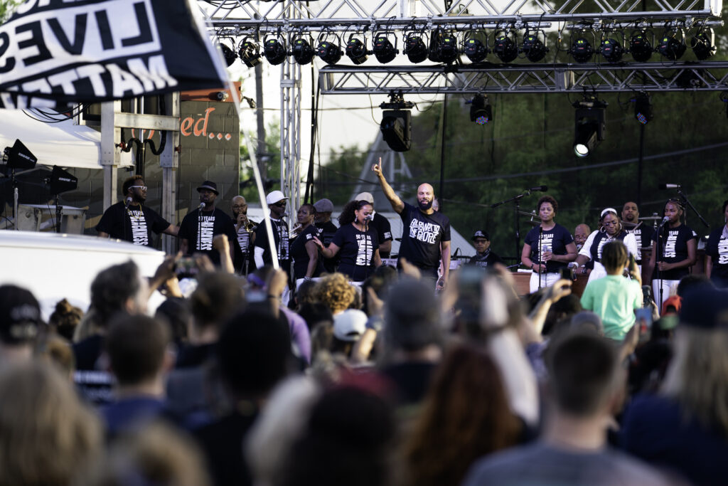 Inspired by performing in California prisons, Common founded Imagine Justice in 2017. During the COVID-19 pandemic, Imagine Justice initiated the #WeMatterToo campaign, collaborating with advocacy groups to highlight the pandemic’s threat to incarcerated individuals.