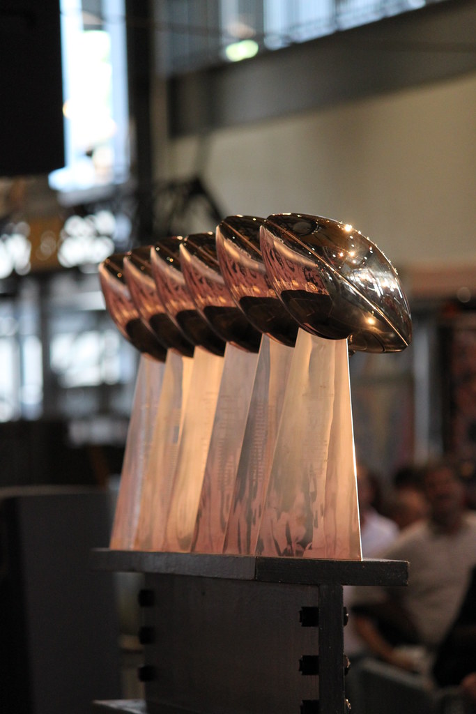 The NFL’s rich history is also etched in the trophies that have celebrated its champions. The very first award, the Brunswick-Balke-Collender Cup, donated in 1920, was a traveling trophy intended to become permanent after three wins, but its current whereabouts remain a mystery. From 1934 to 1967, the Ed Thorp Memorial Trophy honored the league’s champions, with smaller replicas issued for permanent possession by winning teams. Though once thought lost, the main trophy is believed to be held by the Green Bay Packers Hall of Fame, a fitting resting place for a piece of NFL history.