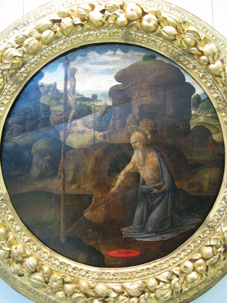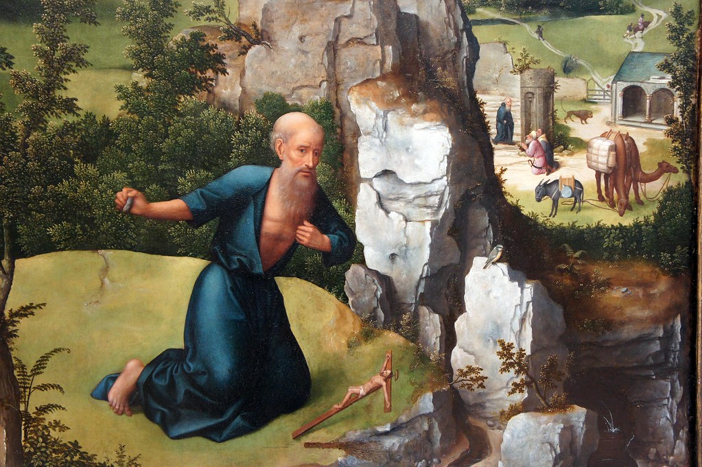 Another significant artistic theme, particularly from the later 15th century in Italy, is “Jerome Penitent.” In these works, he is typically situated in the desert, clad in ragged clothes or even above the waist, his gaze intently fixed on a crucifix as he engages in self-mortification by beating himself with his fist or a rock. Georges de La Tour’s 17th-century French versions notably juxtapose his penitence with the vivid presence of his red cardinal hat. Furthermore, Jerome is often linked to the `vanitas` motif, a profound reflection on the meaninglessness of earthly life and the transient nature of all worldly goods and pursuits. Pieter Coecke van Aelst’s 16th-century “Saint Jerome in his study” exemplifies this, depicting the saint with a skull and an admonition pinned to the wall: “Cogita Mori” (“Think upon death”). Other reminders of the passage of time and the imminence of death, such as an image of the Last Judgment within his Bible, a burning candle, and an hourglass, frequently accompany these powerful visual narratives. His iconography also includes an owl, symbolizing wisdom and scholarship, along with writing materials and the trumpet of final judgment, all contributing to a multifaceted and enduring artistic representation of this towering figure in Christian history.