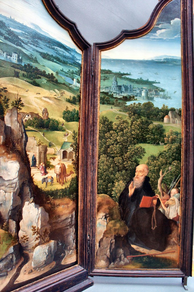 From the late Middle Ages onward, depictions of Jerome in broader settings became increasingly popular. Artists often showed him in his study, surrounded by books and the scholarly equipment befitting a man of letters, or in a stark, rocky desert, symbolizing his ascetic life. Sometimes, these elements were combined, with Jerome studying a book under the shelter of a rock-face or within a cave mouth. In these “study” depictions, he is often clean-shaven, well-dressed, and may even be accompanied by a cardinal’s hat, an anachronistic but honorary visual cue to his significance. These images often draw from the tradition of the evangelist portrait, granting Jerome the meticulous library and desk of a serious scholar. His symbolic lion, frequently rendered at a smaller scale, is typically positioned beside him in either setting.