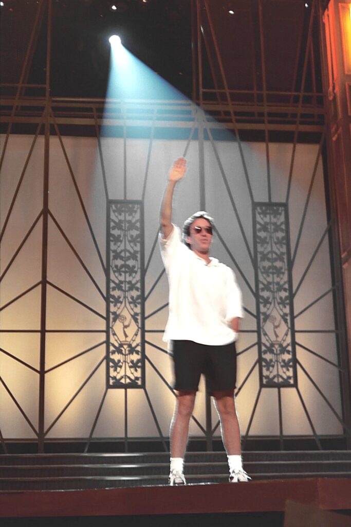 Another stunt involved Allen falling off a roof, landing “upside down instead of right side up on this rigging” wrapped around his groin. He humorously recounted being in a “considerable amount of discomfort” and telling the stage manager, who asked for his line, “‘I’m trapped. I can’t breathe, and I’m in a serious amount of pain.'” Allen recalled that “This is all going on for way too long” before he finally exclaimed, “‘Get me the frick down!'”
