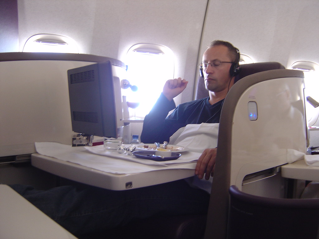 Second, avoid reclining during food and beverage service. This one seems obvious, yet it still happens. As etiquette expert Rosalinda Oropeza Randall advises, “Avoid reclining when the majority of the passengers are enjoying their snack or meal.” The reason is clear: if you push your seat back while the person behind you is eating, you risk sending their food – and quite possibly their drink – directly into their lap. This not only causes a huge mess but also ruins their meal and creates an uncomfortable, embarrassing situation for everyone involved.